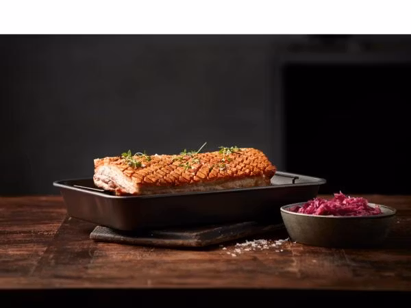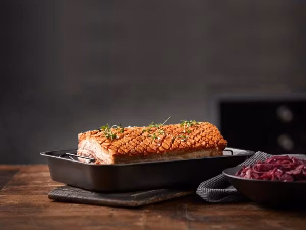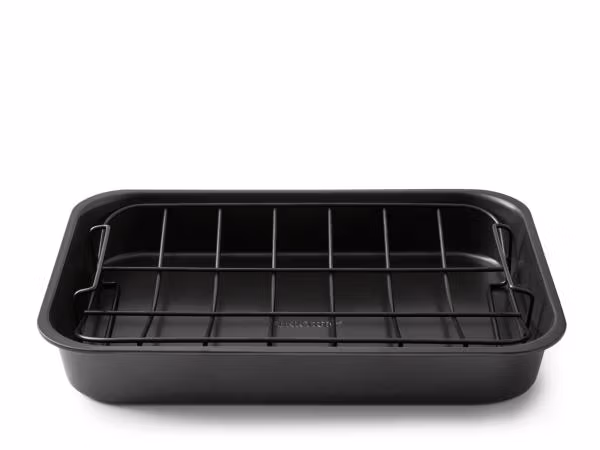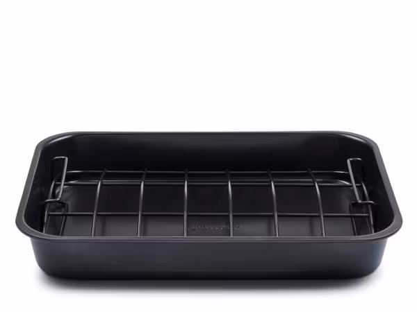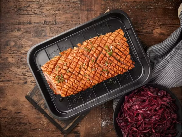 Invändigt har ugnspannan en non-stick-beläggning, som gör att maten inte fastnar, och att rengöringen går lättare.